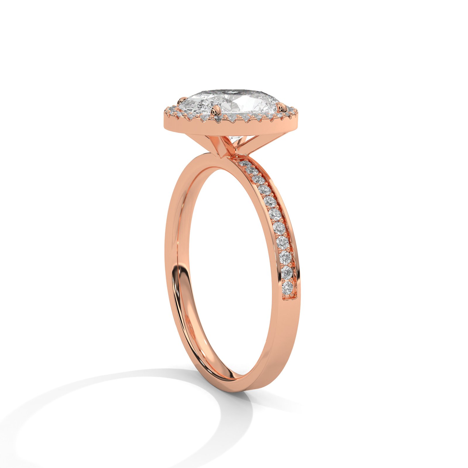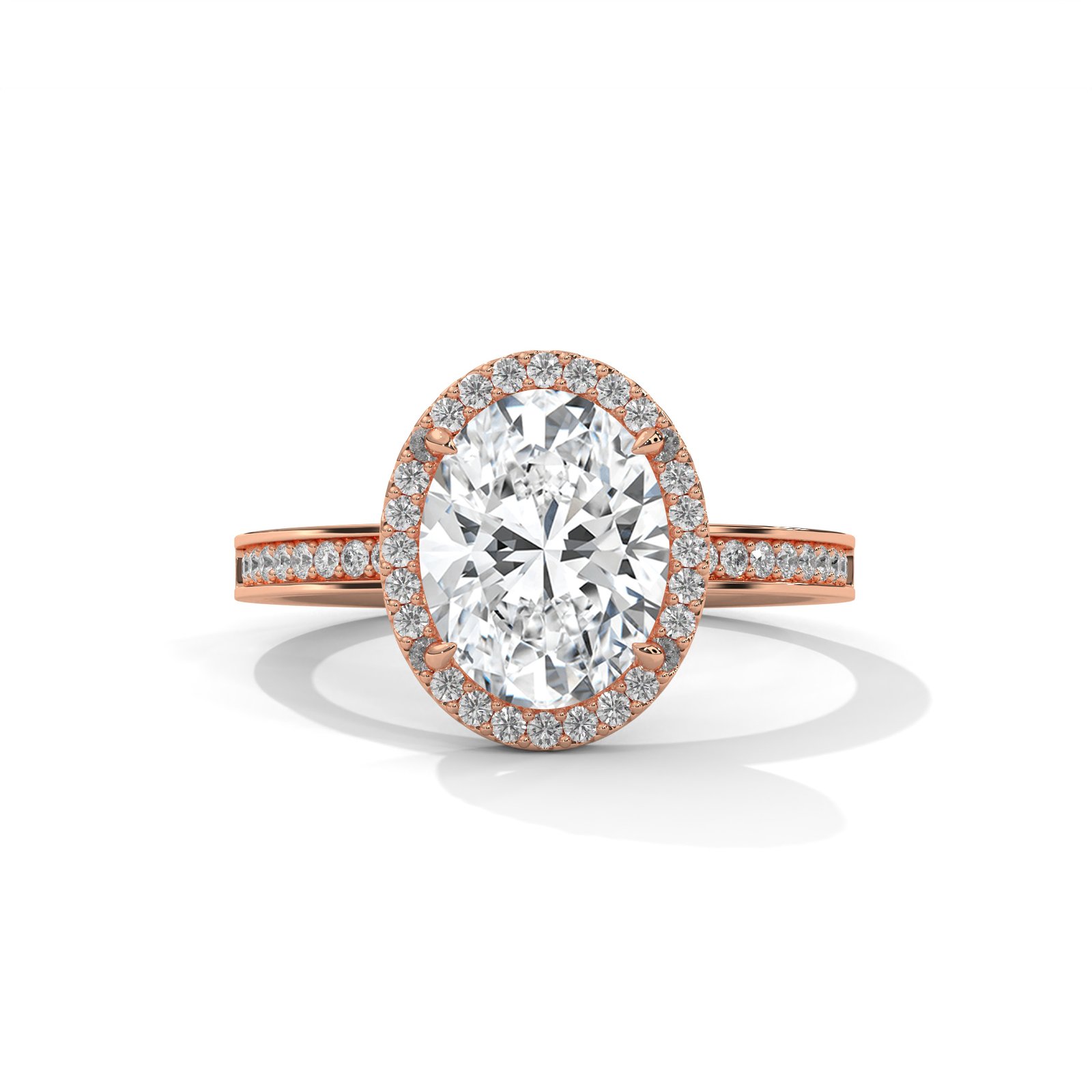 3.DIAMONDS :The oval-cut diamond, with its elongated shape and graceful curves, offers a unique and captivating sparkle. Its smooth, polished surface is designed to enhance its lab grown brilliance, creating a striking focal point.Delicate small diamonds are strategically set along the band or as a subtle halo around the main oval diamond.