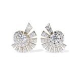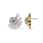 They showcase a modern, geometric aesthetic with a sunburst or fan-like arrangement of diamonds.The lighting is well-executed, highlighting the brilliance of the diamonds and the shine of the gold.