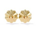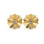 The earrings feature a stylized floral design, resembling a blooming flower or a sunburst. They have a central diamond surrounded by radiating, petal-like structures with a fluted or pleated texture.
