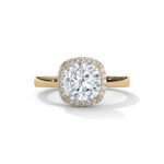 cushion gold solitaire engagement ring is a modern and playful take on traditional ring designs. Featuring three interconnected bands, each adorned with bubbly accents, this ring exudes contemporary charm and whimsy. Its sleek and minimalist design makes it versatile for both casual and formal occasions, adding a touch of fun and elegance to any ensemble.
