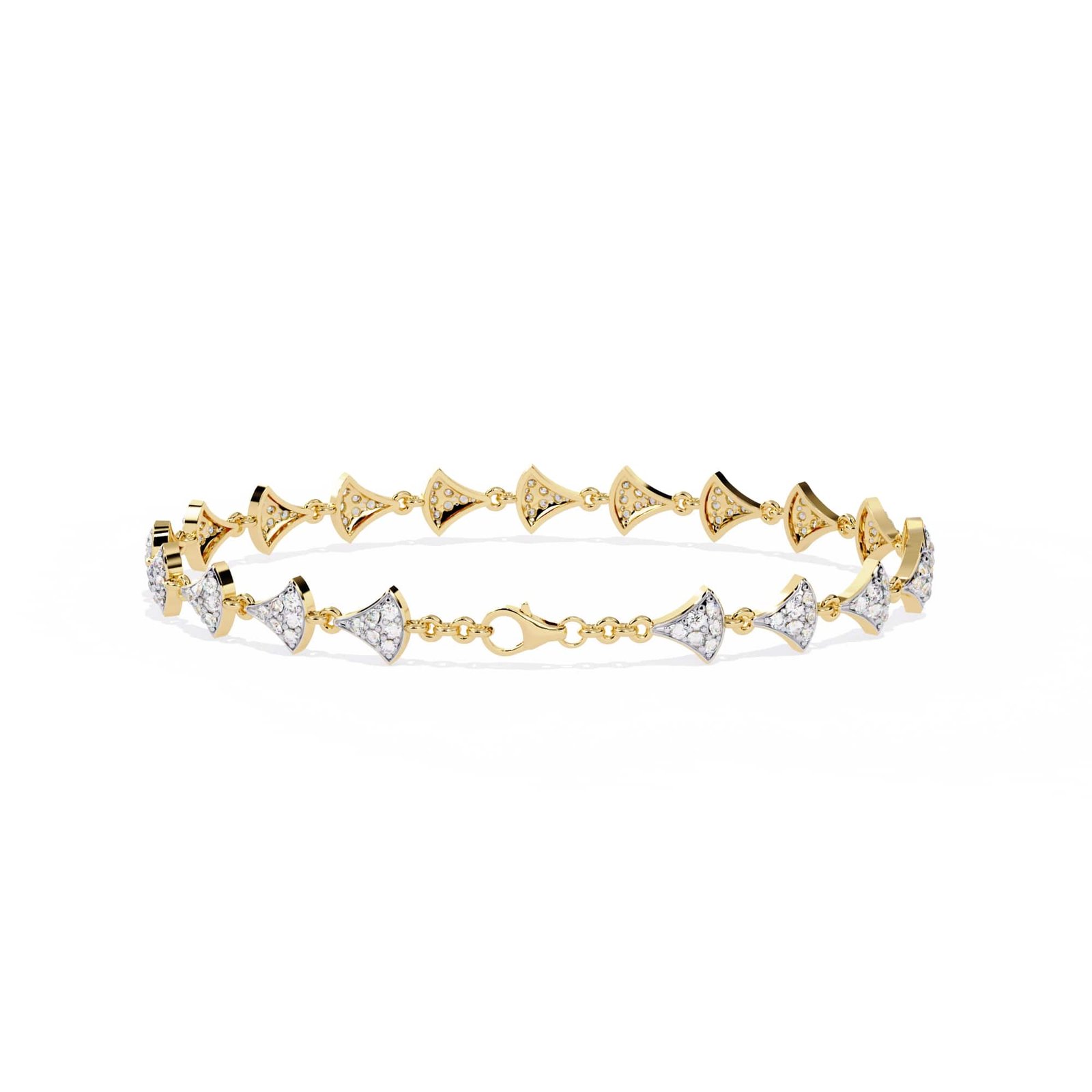 “A modern take on a timeless classic, this bangle bracelet features sparkling diamonds for a touch of contemporary chic.”