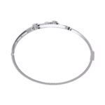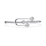 “Crafted in precious metal, this luxurious bangle showcases a stunning row of sparkling diamonds, perfect for any special occasion.”