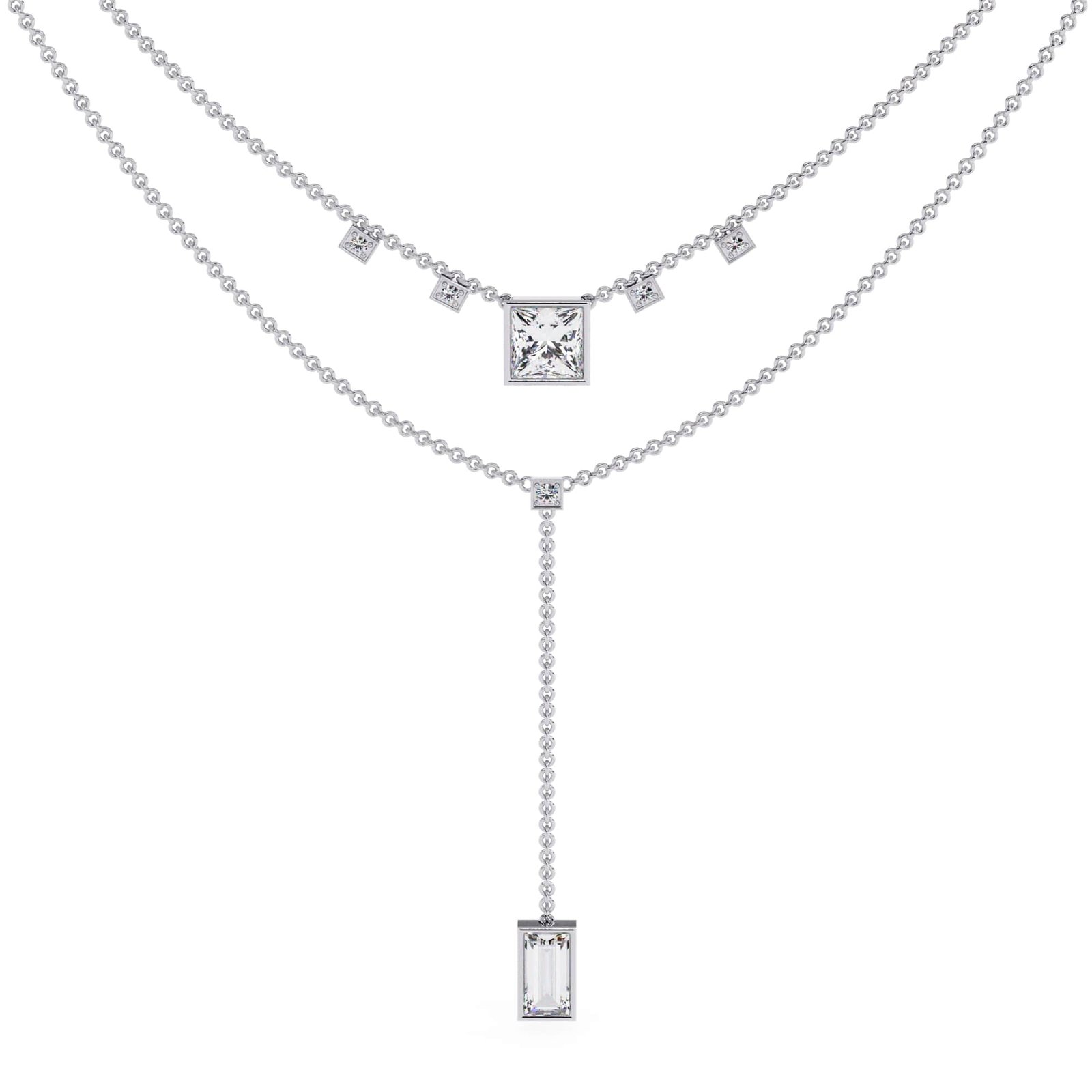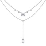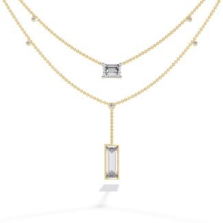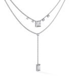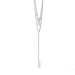 “The necklace features a double-layered design, creating a trendy and dimensional look,The lower layer has a prominent drop pendant, adding a focal point and movement.”