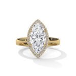 Marquise gold solitaire engagement ring is a modern and playful take on traditional ring designs. Featuring three interconnected bands, each adorned with bubbly accents, this ring exudes contemporary charm and whimsy. Its sleek and minimalist design makes it versatile for both casual and formal occasions, adding a touch of fun and elegance to any ensemble.