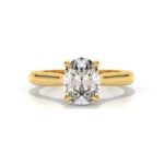 2.MATERIALS :The band itself is elegantly tapered, crafted from high-quality metal—available in options such as yellow gold,to complement the diamond’s brilliance.