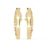 These exquisite hoop earrings feature a modern design, expertly crafted in gold and accented with gold detailing. The earrings are adorned with a dazzling display of diamonds, showcasing both round brilliant and baguette cuts.