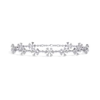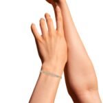 “A timeless masterpiece, this diamond bangle bracelet shimmers with exquisite brilliance. Crafted with meticulous attention to detail, it features a graceful row of sparkling diamonds, creating a dazzling display of luxury on your wrist.”