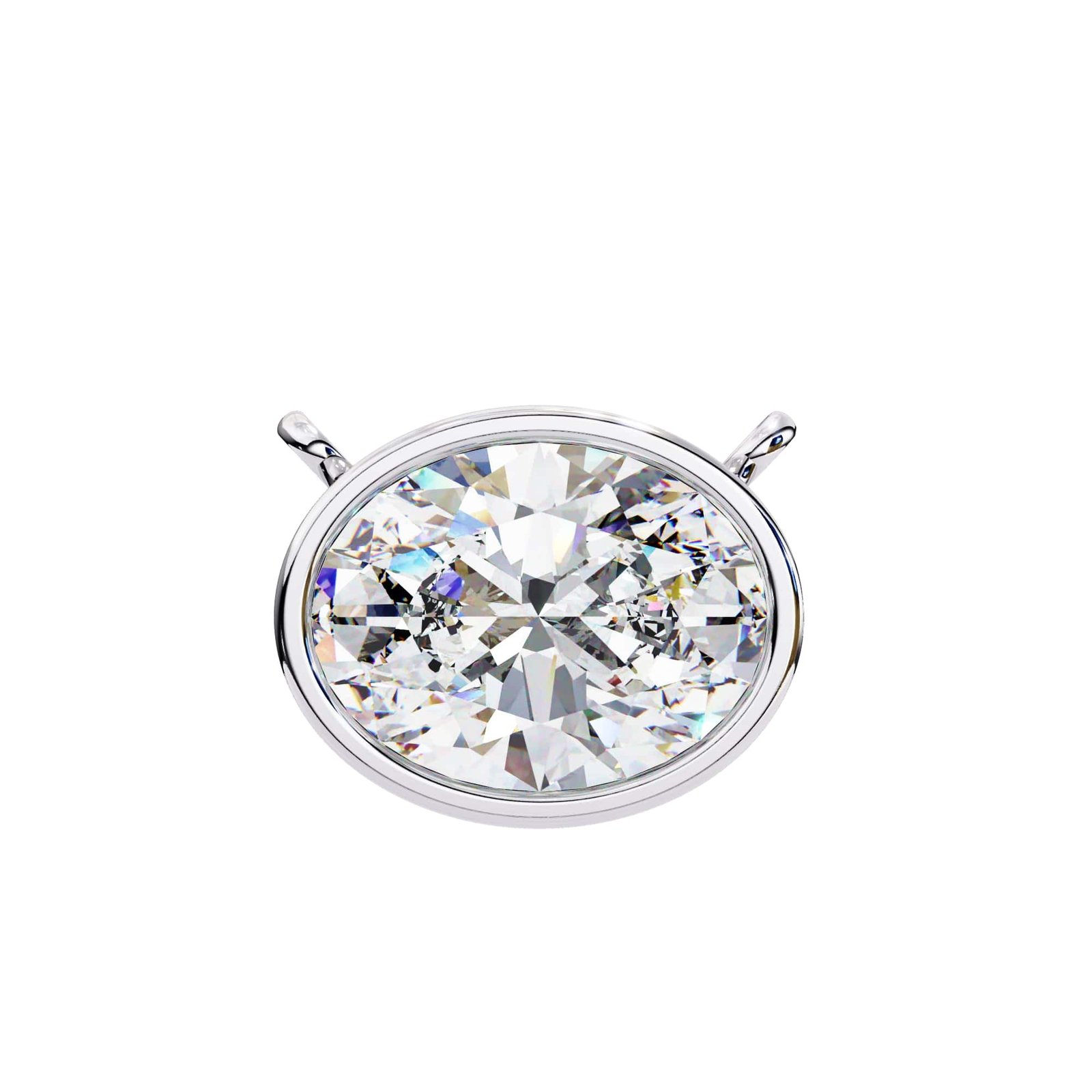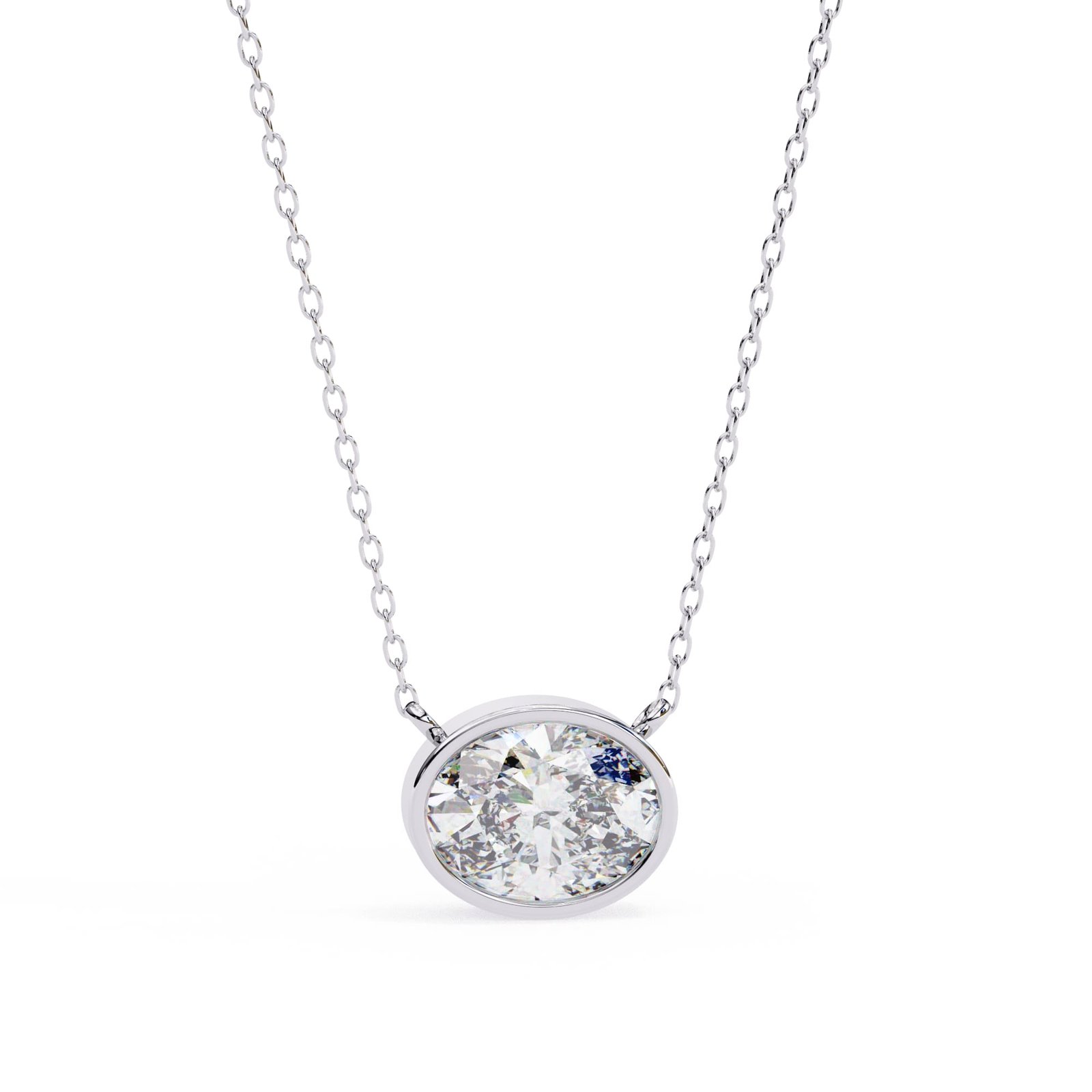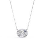 The pendant features a prominent, oval-cut diamond. The diamond appears to be of substantial size and exhibits good brilliance and clarity. The oval cut is a classic and elegant choice, offering a flattering shape and a beautiful display of light.