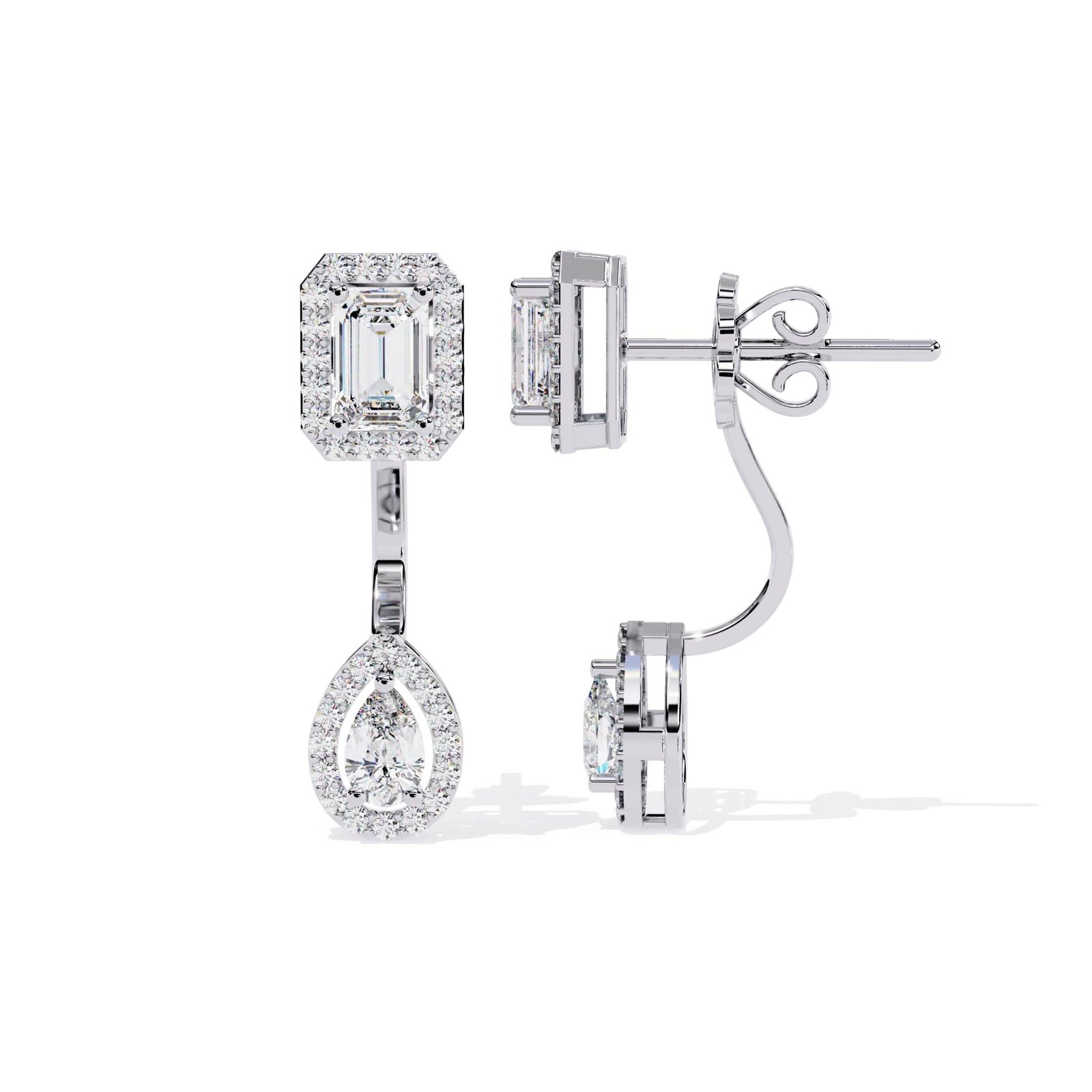 2.MATERIALS :These earrings are often set in precious metal white gold, and the diamond is typically held securely in a prong setting
