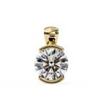 The design is classic and contemporary. The bezel setting gives it a more modern edge compared to traditional prong settings. The simplicity of the design allows the brilliance of the round brilliant cut stone to be the focal point.