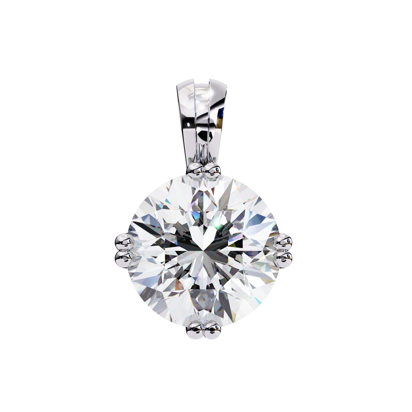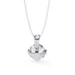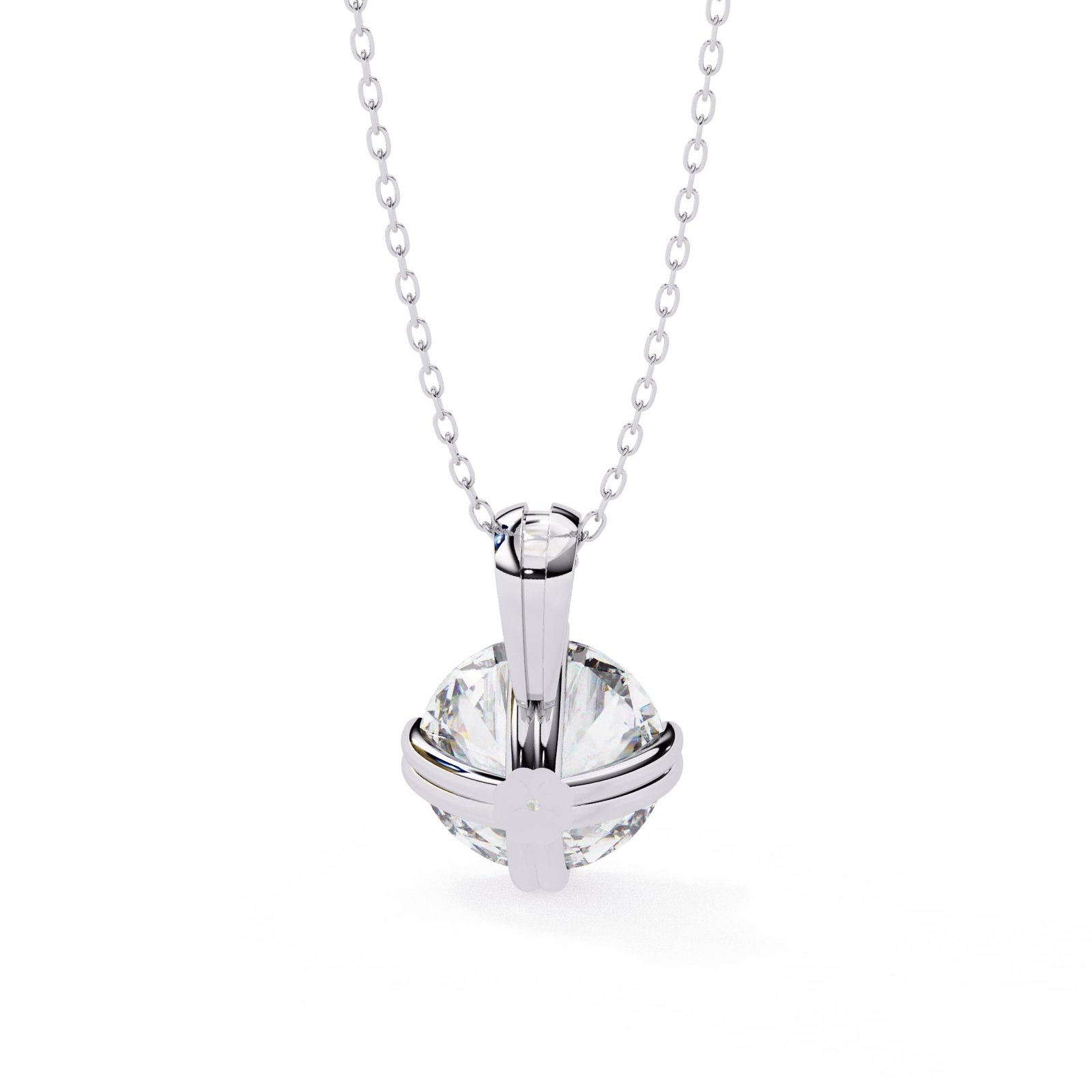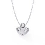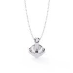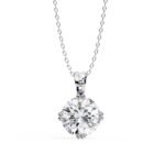A solitaire pendant featuring a round brilliant cut diamond, set in a simple pendant setting.The focus is entirely on the stone’s brilliance and the clean lines of the setting