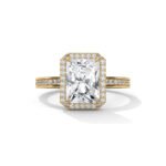 Experience timeless beauty and sophistication with this exquisite radiant-solitaire diamond ring. Featuring a stunning radiant-cut diamond as its centerpiece, this ring is elegantly enhanced by small accent diamonds that add a touch of extra brilliance and refinement.