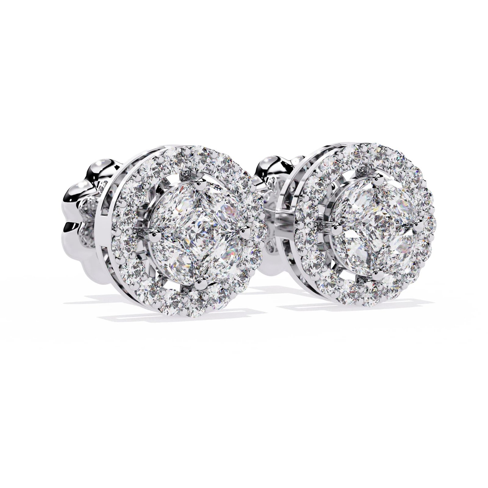 They feature a center cluster of princess cut diamonds surrounded by a halo of marquise and round brilliant cut diamonds.